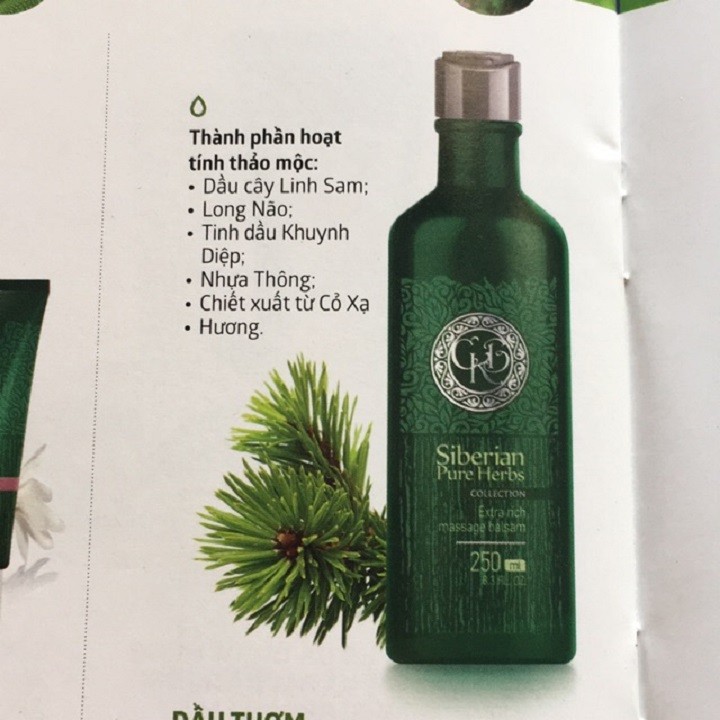 Dầu Massage Balsam trong bộ sưu tập Siberian Pure Herbs giàu chiết xuất từ thảo mộc kết hợp với dầu cây Linh Sam, giúp chăm sóc và dưỡng da toàn thân, mang lại cảm giác dễ chịu thư giãn cho làn da.