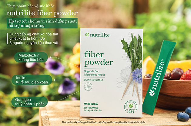 Nutrilite Fiber Powder là dòng sản phẩm bổ sung chất xơ hòa tan và chiết xuất từ rễ rau diếp cá xoăn giúp lợi khuẩn đường ruột phát triển tốt hơn, hiệu quả hơn từ đó ngăn ngừa nhiều bệnh lý liên quan đến dạ dày, đường ruột. Giúp cải thiện và nâng cao hoạt động của hệ tiêu hóa từ đó nâng cao khả năng hấp thụ dinh dưỡng, tăng cường hệ thống miễn dịch, nâng cao đề kháng của người dùng. Là sản phẩm cực kỳ phù hợp với người ít ăn rau củ, trái cây, người hấp thụ kém, người gặp tình trạng táo bón, khó chịu bụng.