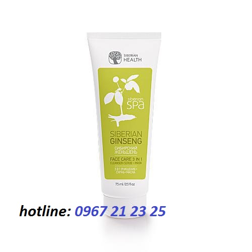 Sâm Siberian Ginseng chăm sóc da mặt 3 trong 1 của Siberian Heal với sâm Siberi, chiết xuất cây Bách xù và vỏ cây Sồi, chiết xuất Cỏ xạ hương và cây Khoản đông hoa giúp làm sạch (Cleanser), tẩy tế bào chết (Scrub) và mặt nạ (Mask)