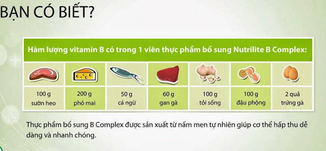 - Dùng 1 viên B Complex sau mỗi bữa ăn bất kì trong ngày.